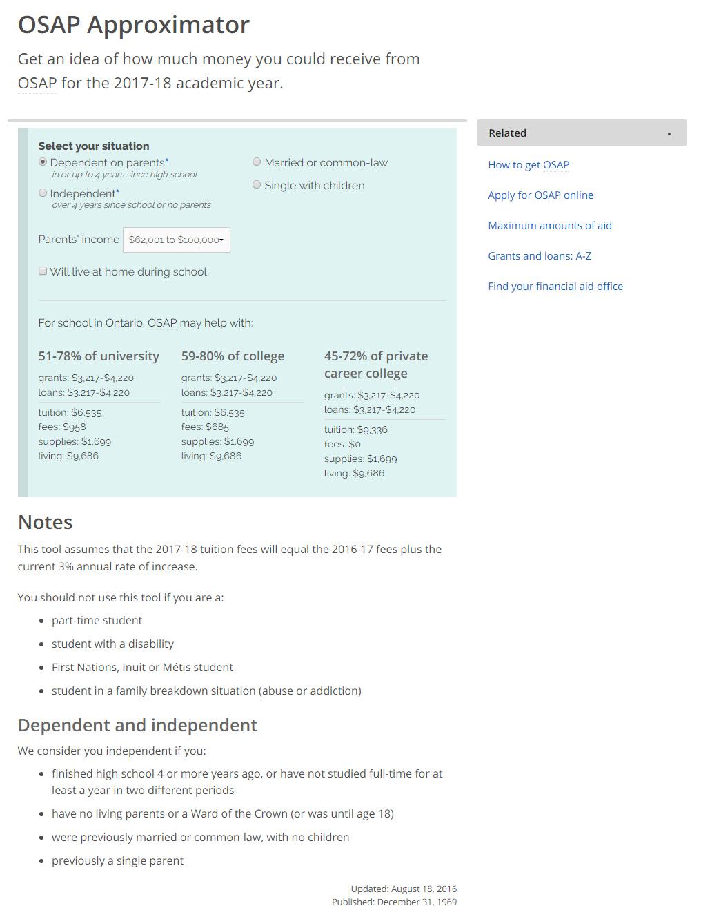 OSAP A new financial aid calculator by Michael Fagan Ontario , The amount you get depends on many factors, including your annual income (and that of your spouse if.